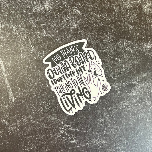 No Thanks Ouija Board, I Don't Even Like Talking to the Living Die Cut Sticker
